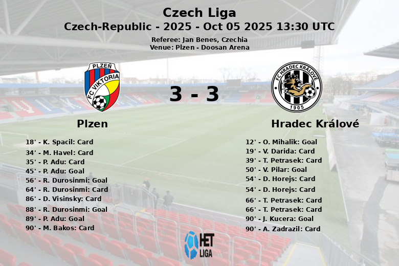 Plzen, República Checa – El Doosan Arena fue testigo de un encuentro vibrante y disputado entre el Plzen y el Hradec Králové, que finalizó con una ajustada victoria para el equipo local. El Plzen dominó la posesión con un 63%, pero el Hradec Králové se mostró peligroso al contraataque.