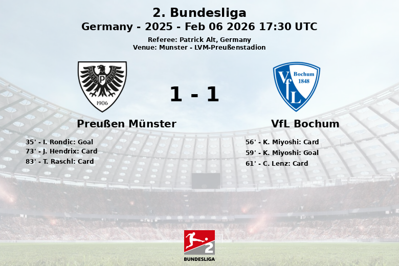 Munster, Alemania – El LVM-Preußenstadion fue testigo de un emocionante empate entre el Preußen Münster y el VfL Bochum en la jornada 21 de la 2. Bundesliga. El partido, disputado el 6 de febrero de 2026, finalizó con un marcador que reflejó la intensidad y la lucha en el campo.