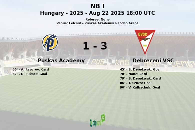 Puskas Academy vs Debreceni VSC Aug 22 2025 18:00 UTC