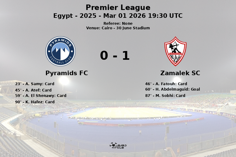 Cairo, Egipto – 1 de Marzo de 2026 – El Zamalek SC se llevó una disputada victoria en el 30 June Stadium de Cairo contra el Pyramids FC en un partido correspondiente a la jornada 20 de la Premier League Egipcia. El encuentro, caracterizado por una alta posesión del balón a favor del Pyramids FC (67%), contrastó con la efectividad del Zamalek SC, que aprovechó la oportunidad de un penal en el minuto 60 para marcar el único gol del partido, obra de H. Abdelmaguid.