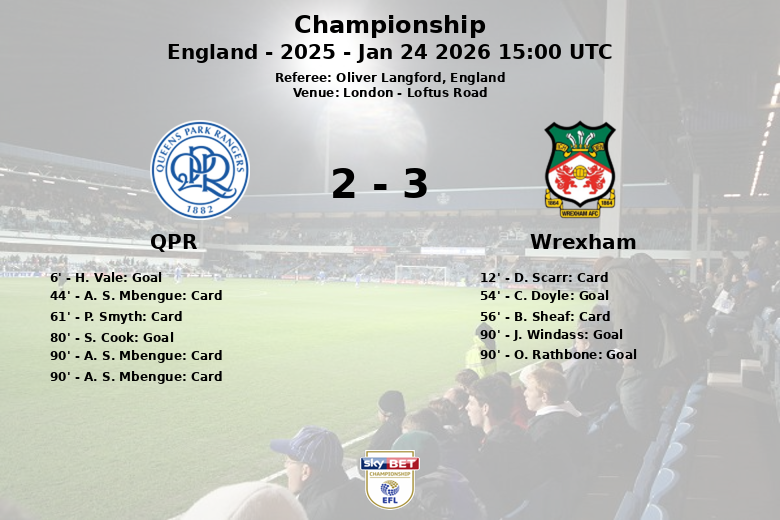Cuando todo parecía indicar un empate, S. Cook del QPR marcó un gol al minuto 80, alimentando las esperanzas de la afición local. No obstante, el Wrexham respondió con una fuerza arrolladora en el tiempo añadido. J. Windass anotó al minuto 90 y, apenas instantes después, O. Rathbone selló la victoria para el Wrexham con un gol asistido por el mismo Windass.