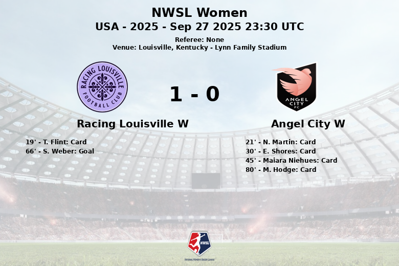 El único gol del partido llegó en el minuto 66, obra de S. Weber, quien aprovechó una asistencia de E. Sears para adelantar al Racing Louisville W. A pesar de los intentos de Angel City W por igualar el marcador, el equipo local se mantuvo firme en defensa y aseguró los tres puntos.
