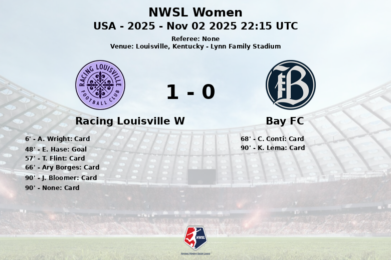 Louisville, Kentucky – En un encuentro de la NWSL Women disputado en el Lynn Family Stadium, Racing Louisville W se impuso a Bay FC en un partido de la temporada regular marcado por la intensidad y las tarjetas. Racing Louisville W, con un 47% de posesión, demostró ser más incisivo en ataque, acumulando 22 disparos, de los cuales 6 fueron a puerta y 11 se desviaron. La escuadra local también obtuvo 9 corners. El único gol del partido llegó en el minuto 48 gracias a E. Hase, asistida por K. O’Kane, desatando la alegría en las gradas. El encuentro fue interrumpido por constantes faltas, 9 por cada equipo, y un total de 5 tarjetas amarillas. El primer tiempo vio a A. Wright de Racing Louisville W amonestada en el minuto 6. En el segundo tiempo, el juego se tornó más físico, con tarjetas para T. Flint y Ary Borges del Racing Louisville W, y C. Conti por Bay FC. En los últimos minutos del encuentro, se mostraron tarjetas amarillas a J. Bloomer y K. Lema para finalizar el partido. A pesar de tener mayor posesión (53%), Bay FC no logró concretar sus oportunidades, registrando sólo 4 tiros en todo el partido, ninguno de los cuales fue a puerta. Racing Louisville W se lleva los tres puntos en un partido clave de la temporada regular.