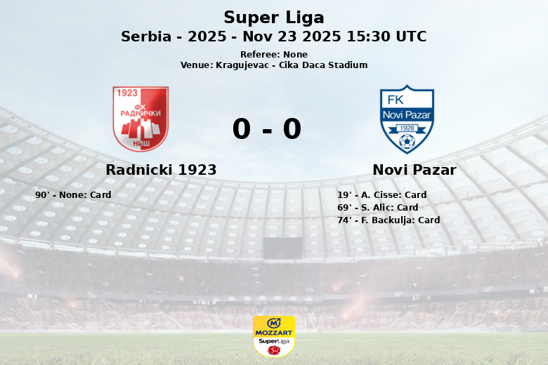 Novi Pazar, con un 42% de posesión, optó por un juego más directo y agresivo, cometiendo 18 faltas que les valieron 3 tarjetas amarillas. A pesar de tener menos posesión, lograron generar 7 oportunidades de gol, con 3 tiros dirigidos a puerta. El partido se caracterizó por una alta tensión, reflejada en el número de faltas y amonestaciones. Radnicki 1923 tuvo seis saques de esquina, al igual que Novi Pazar, pero ninguno logró traducirse en gol. El encuentro se jugó en un ambiente de alta intensidad, con ambos equipos luchando por cada balón.