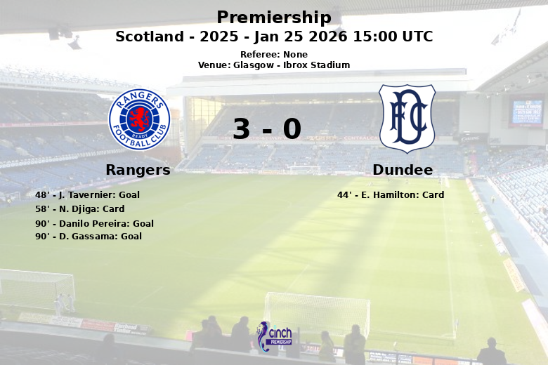 Glasgow, Escocia – En un encuentro disputado en el Ibrox Stadium, el Rangers se impuso con claridad ante el Dundee, obteniendo una victoria que consolida su posición en la Premiership. El partido, correspondiente a la jornada 23 de la primera fase de la temporada 2025, vio al Rangers mantener una posesión del 54% del balón, reflejo de su dominio territorial y control del ritmo del juego.
