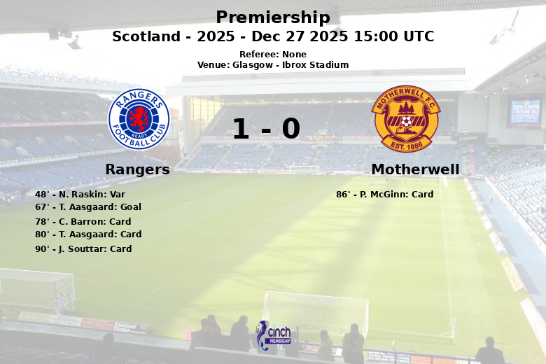 Un gol de T. Aasgaard en el minuto 67, sin asistencia, parecía encaminar la victoria para los Rangers, pero la alegría duró poco. Anteriormente, en el minuto 48, un gol de N. Raskin fue anulado por el VAR debido a un fuera de juego, desatando la controversia en la afición local.