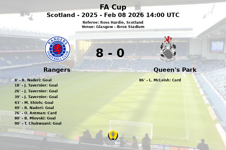 Glasgow, 8 de febrero de 2026 – El Rangers ofreció una exhibición de poderío ofensivo en el Ibrox Stadium, arrollando al Queen’s Park en los dieciseisavos de final de la FA Cup. El partido, arbitrado por Ross Hardie, concluyó con un marcador abultado que refleja la clara superioridad del equipo local.