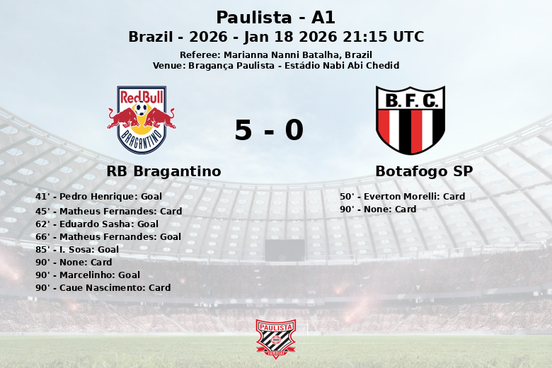 Bragança Paulista fue testigo de una exhibición ofensiva del RB Bragantino, que superó al Botafogo SP en un partido de la Serie A1 Paulista. El encuentro, disputado en el Estádio Nabi Abi Chedid, finalizó con una contundente victoria para el equipo local.