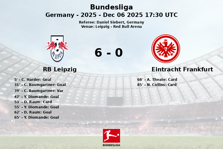 Leipzig, Alemania – El RB Leipzig ofreció una exhibición ofensiva contundente en el Red Bull Arena, superando al Eintracht Frankfurt con una clara superioridad. El encuentro, correspondiente a la jornada 13 de la Bundesliga, culminó con una lluvia de goles que deleitó a la afición local.