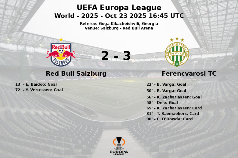 En un encuentro vibrante disputado en el Red Bull Arena de Salzburgo, el Ferencvarosi TC sorprendió al Red Bull Salzburg con una contundente victoria. El partido, correspondiente a la tercera jornada de la fase de grupos de la UEFA Europa League, vio al equipo húngaro imponerse en un duelo de alta intensidad.