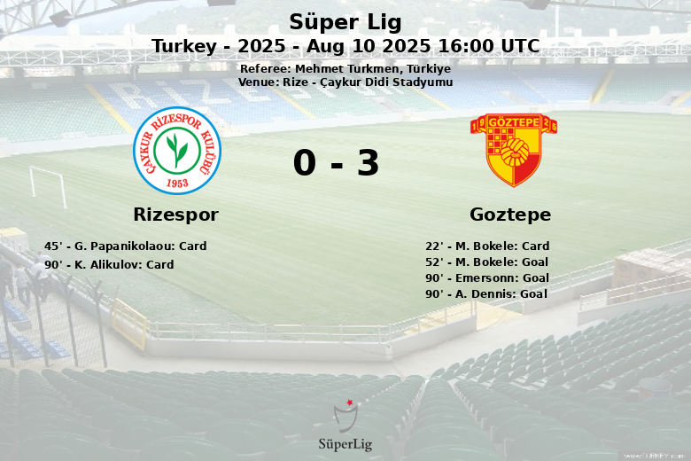 Rize, Turquía – En un encuentro disputado en el Çaykur Didi Stadyumu, el Göztepe se impuso al Rizespor con un marcador final que reflejó su efectividad de cara al gol. El partido, correspondiente a la primera jornada de la Süper Lig, tuvo momentos de tensión, evidenciados por las tres tarjetas amarillas mostradas por el árbitro Mehmet Turkmen.