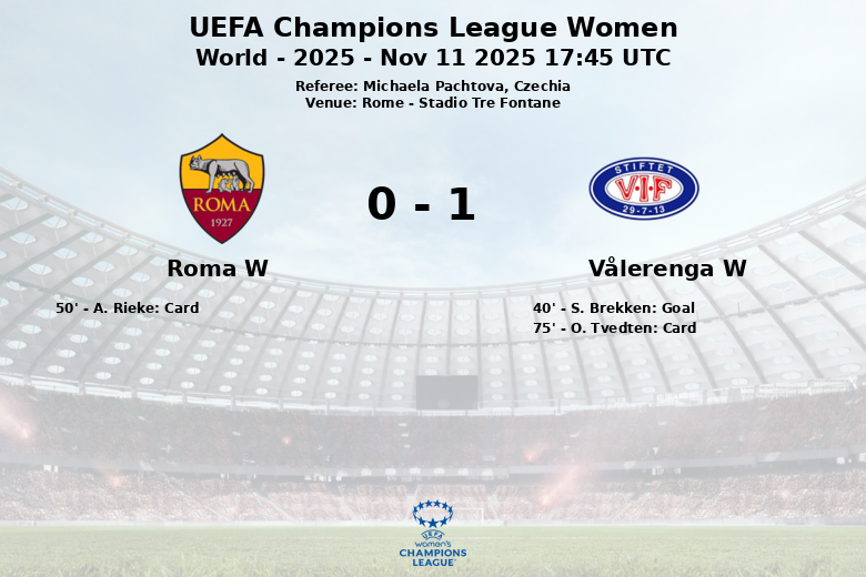 El Vålerenga se adelantó en el marcador al minuto 40 gracias a un gol de S. Brekken, asistida por A. Eiriksdottir. A pesar de la ventaja en la posesión del balón por parte de la Roma (56% frente al 44% del Vålerenga) y un mayor número de intentos al arco (22 tiros en total, de los cuales 5 fueron a puerta), el equipo italiano no pudo materializar su dominio en el resultado.