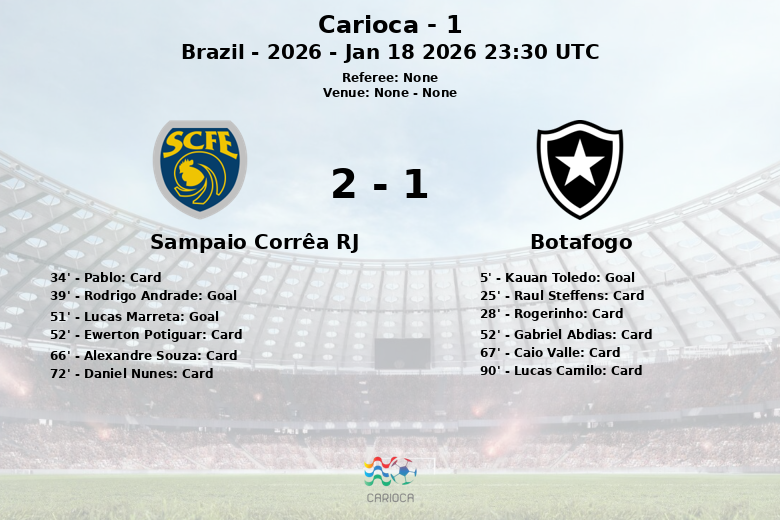 En un encuentro disputado el 18 de enero de 2026, el Sampaio Corrêa RJ logró una importante victoria ante el Botafogo en la segunda ronda de la temporada regular del Carioca – 1. A pesar de comenzar el partido con un gol tempranero de Kauan Toledo para el Botafogo al minuto 5, con asistencia de Arthur Izaque, el Sampaio Corrêa RJ demostró resiliencia y aprovechó la inferioridad numérica del equipo rival tras la expulsión de Rogerinho al minuto 28.