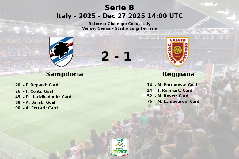 Genoa, Italia – La Sampdoria logró una victoria trabajada frente a Reggiana en el Stadio Luigi Ferraris, en un encuentro correspondiente a la jornada 18 de la Serie B. El partido, arbitrado por Giuseppe Collu, se caracterizó por la intensidad y la lucha en el mediocampo.