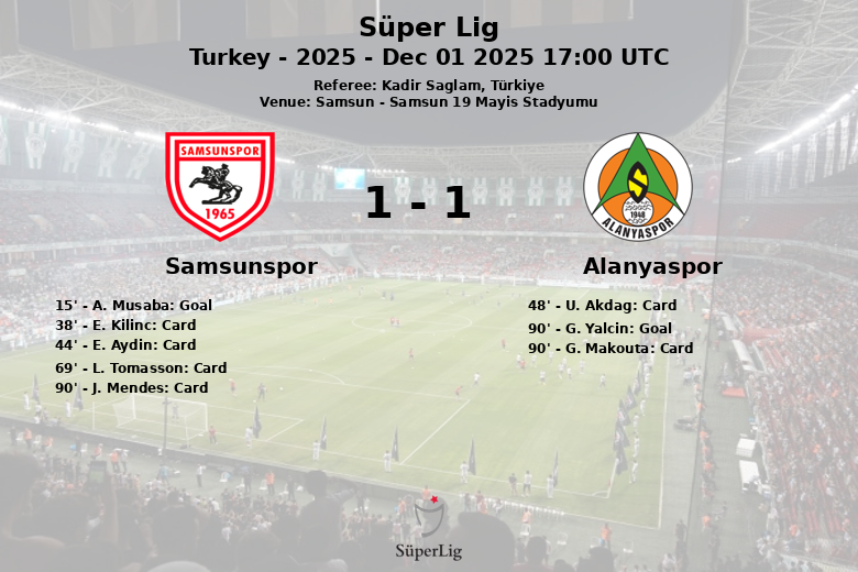 Samsun, Turquía – El Samsun 19 Mayis Stadyumu fue testigo de un encuentro vibrante entre el Samsunspor y el Alanyaspor en la jornada 14 de la Süper Lig. El partido, disputado el 1 de diciembre de 2025, finalizó con un empate que dejó un sabor agridulce para ambos conjuntos.