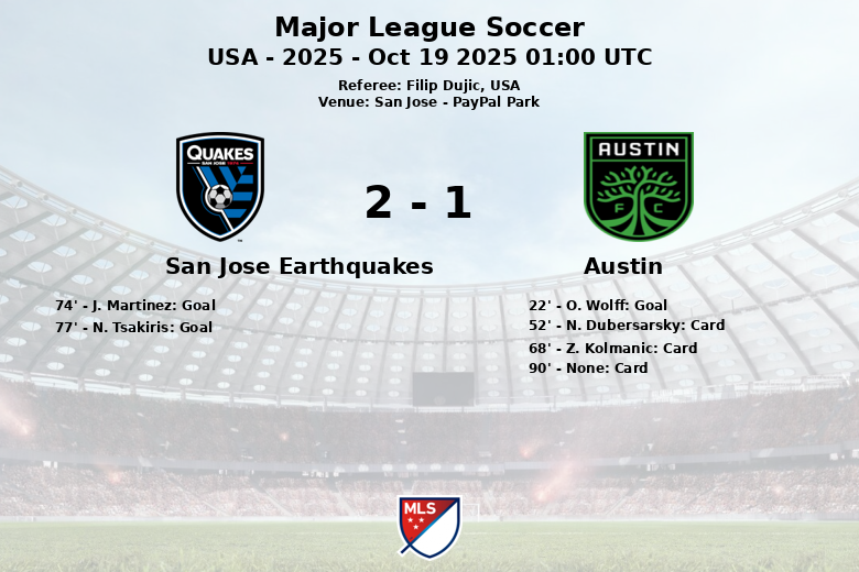 San Jose, California – En un encuentro disputado en PayPal Park, el Austin FC y el San Jose Earthquakes igualaron en un partido que tuvo de todo. A pesar de dominar la posesión con un 65%, los Earthquakes tuvieron que venir de atrás para rescatar un punto. Austin se adelantó temprano en el minuto 22 con un gol de O. Wolff, asistido por J. Obrian, tras un buen ataque. Sin embargo, la segunda mitad fue completamente diferente. San Jose intensificó su ofensiva, generando numerosas oportunidades. Fue en el minuto 74 cuando J. Martinez encontró el fondo de la red para igualar el marcador. Apenas tres minutos después, N. Tsakiris completó la remontada con un gol que puso en ventaja a los locales. Austin, que se había replegado y apostaba por el contragolpe, no pudo responder a la intensidad de San Jose. El partido se caracterizó por un juego físico, reflejado en las numerosas faltas cometidas por ambos equipos y las tarjetas amarillas mostradas. Al final, el encuentro concluyó con un empate que deja un sabor amargo para Austin, que vio cómo se escapaba la victoria en los últimos minutos.