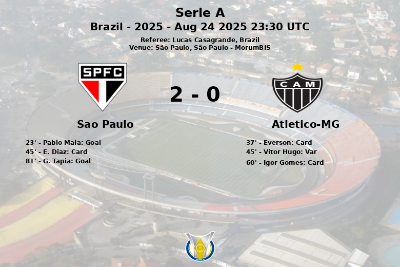 São Paulo, São Paulo – En un encuentro disputado en el MorumBIS, el São Paulo se alzó con la victoria frente al Atlético Mineiro en un partido de la Serie A marcado por la intensidad y la imprecisión del equipo visitante. Pablo Maia abrió el marcador en el minuto 23, tras una asistencia de D. Bobadilla, dando la ventaja a los locales.