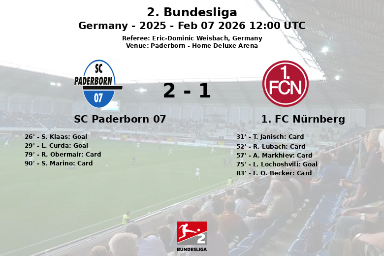 Paderborn, Alemania – En un encuentro disputado en la Home Deluxe Arena, el SC Paderborn 07 se impuso al 1. FC Nürnberg en un partido lleno de acción y controversia. El equipo local dominó la posesión con un 55% frente al 45% de su rival.