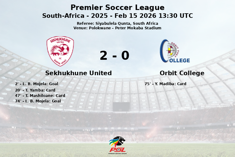 El marcador se amplió al minuto 74, nuevamente gracias a L. B. Mojela, quien esta vez recibió una asistencia de T. Mokoane, consolidando la victoria para el equipo local. Con una mayor efectividad de cara al gol y un juego sólido en defensa, el Sekhukhune United se llevó los tres puntos en un partido clave de la temporada 2025. El encuentro, cargado de faltas (14 para Sekhukhune United y 10 para Orbit College), y 6 saques de esquina (4 para Sekhukhune United y 2 para Orbit College), se vivió con gran pasión en el Peter Mokaba Stadium.
