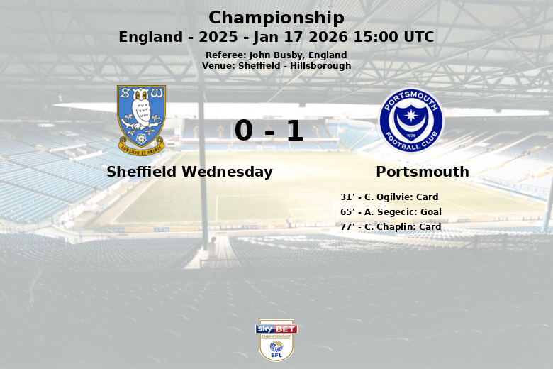Sheffield – En un encuentro disputado en el estadio Hillsborough, el Portsmouth logró una valiosa victoria como visitante frente al Sheffield Wednesday. El partido, correspondiente a la jornada 27 de la Championship, se definió por un solitario gol de A. Segecic al minuto 65.