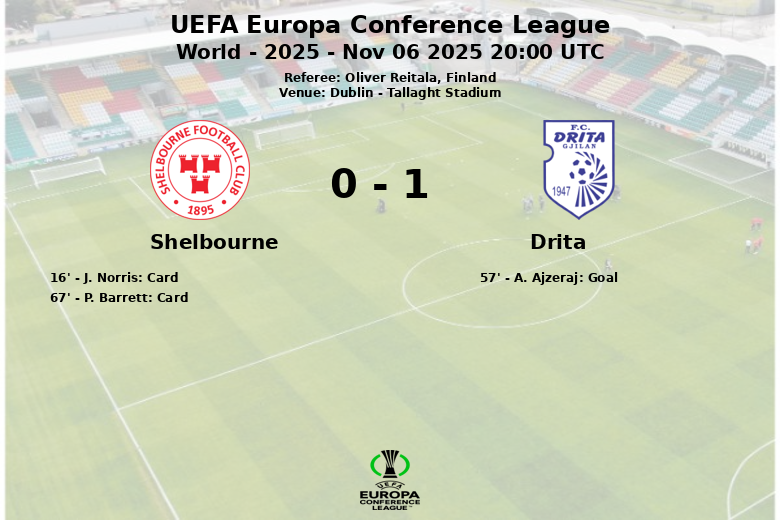 El gol de A. Ajzeraj en el minuto 57 sentenció el partido a favor de Drita. Shelbourne, con un 38% de posesión, intentó reaccionar, pero solo logró concretar dos disparos a puerta de los diez intentos realizados. La disciplina fue otro factor en contra para el equipo irlandés, que cometió 12 faltas y recibió una tarjeta amarilla además de la roja inicial. Drita, por su parte, mantuvo la calma y controló el ritmo del partido para asegurar la victoria. El árbitro Oliver Reitala, de Finlandia, fue el encargado de dirigir el encuentro.