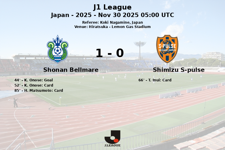 K. Onose, además de marcar el gol, recibió una tarjeta amarilla en el minuto 52. La tensión aumentó en la recta final del partido, culminando con la expulsión de H. Matsumoto del Shonan Bellmare en el minuto 85 tras recibir una tarjeta roja. A pesar de jugar con un hombre menos los últimos minutos, Shonan Bellmare logró defender su ventaja y asegurar los tres puntos.