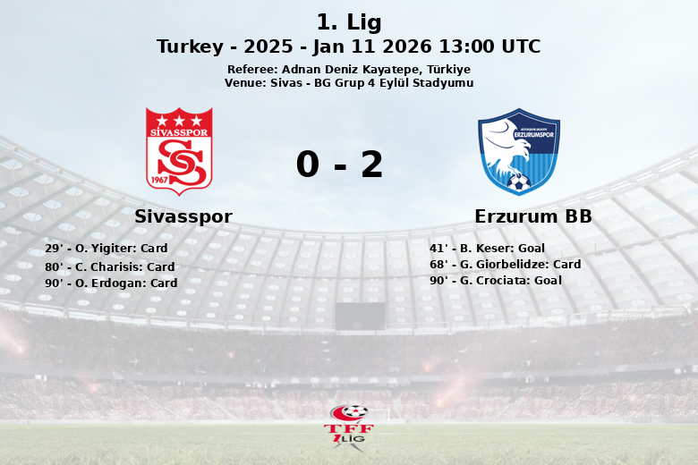 El Erzurum BB aprovechó su superioridad numérica y B. Keser abrió el marcador al minuto 41. El Sivasspor, con un 41% de posesión y solo un tiro a puerta de sus seis intentos, luchó por encontrar el empate. Sin embargo, el Erzurum BB, dominador en la posesión con un 59%, sentenció el partido en el tiempo de descuento con un gol de G. Crociata.
