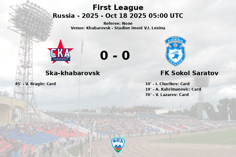 Khabarovsk, Rusia – El partido entre Ska-Khabarovsk y FK Sokol Saratov, disputado en el Stadion imeni V.I. Lenina en el marco de la jornada 15 de la First League, finalizó con un empate sin goles. El encuentro, jugado en un ambiente de alta tensión, se caracterizó por un juego disputado en el mediocampo y pocas ocasiones claras de gol.