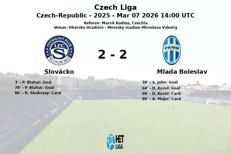 Home Matches Slovácko vs Mlada Boleslav Mar 07 2026 14:00 UTC