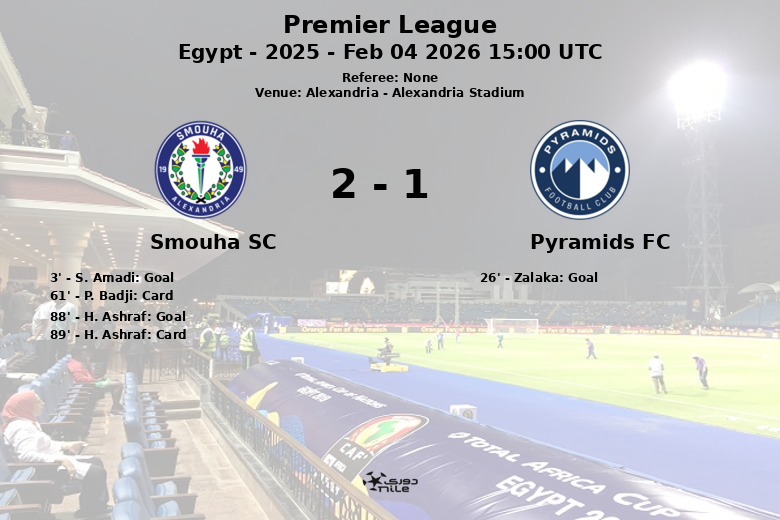 S. Amadi abrió el marcador para Smouha SC apenas al minuto 3, con una asistencia de K. El Ghandour, sorprendiendo al Pyramids FC. Zalaka igualó el marcador para Pyramids FC al minuto 26. El encuentro se mantuvo en un tenso empate hasta los últimos minutos.