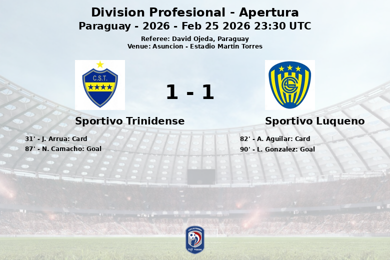El partido se definió en los últimos minutos. Nicolás Camacho adelantó al Sportivo Trinidense en el minuto 87, desatando la euforia en las gradas. Sin embargo, la alegría duró poco, ya que un autogol de L. González en el minuto 90 le dio el empate definitivo al Sportivo Luqueño. El árbitro David Ojeda tuvo una tarea exigente en este encuentro cargado de emociones.