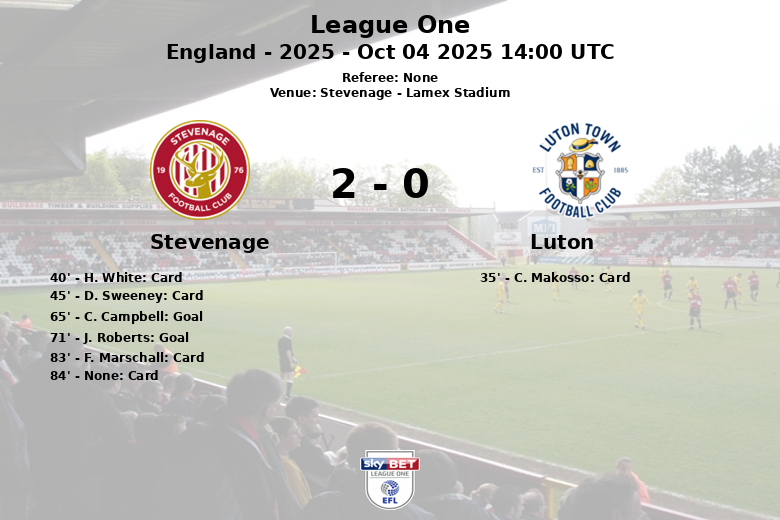 Stevenage, Inglaterra – En un encuentro correspondiente a la jornada 11 de la League One, el Stevenage se impuso al Luton en el Lamex Stadium con un marcador de 2 a 0. El partido, disputado el 4 de octubre de 2025, se caracterizó por la intensidad y la lucha en el mediocampo.
