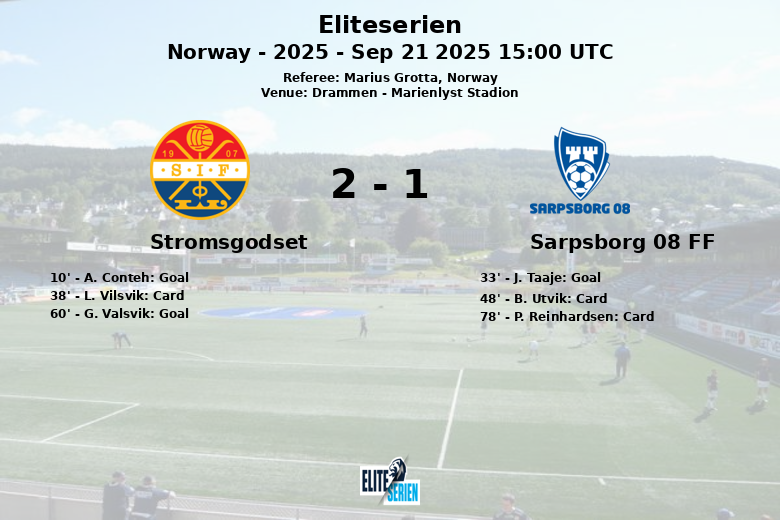 Stromsgodset vs Sarpsborg 08 FF Sep 21 2025 15:00 UTC