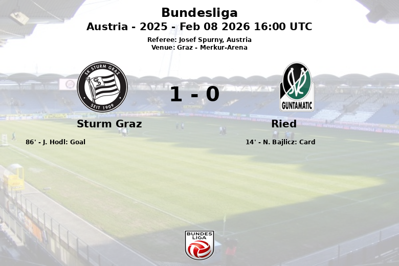 Graz, Austria – En un partido de la Bundesliga austriaca disputado en el Merkur-Arena, el Sturm Graz logró una victoria ante el SV Ried. El encuentro, arbitrado por Josef Spurny, fue parte de la jornada 18 de la temporada regular 2025.