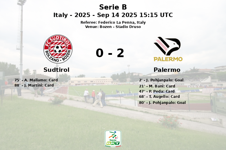 Sudtirol vs Palermo Sep 14 2025 15:15 UTC