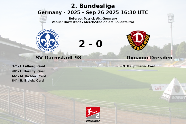 Darmstadt, Alemania – En un encuentro correspondiente a la séptima jornada de la 2. Bundesliga, el SV Darmstadt 98 se llevó la victoria en casa ante el Dynamo Dresden. El partido, disputado en el Merck-Stadion am Böllenfalltor, mostró a un Darmstadt eficiente que aprovechó sus oportunidades de gol.