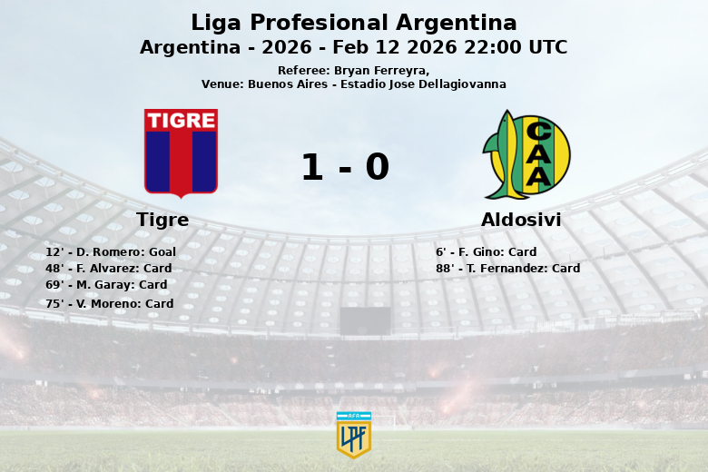 Buenos Aires, Argentina – Tigre venció a Aldosivi en un encuentro correspondiente a la Liga Profesional Argentina disputado en el Estadio José Dellagiovanna. El partido, arbitrado por Bryan Ferreyra, fue tenso y caracterizado por un juego físico.