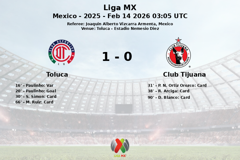 Toluca, México – En un encuentro correspondiente a la jornada 6 del Clausura de la Liga MX 2025, Toluca venció a Club Tijuana en el Estadio Nemesio Diez. El partido, arbitrado por Joaquín Alberto Vizcarra Armenta, fue testigo de un dominio territorial del Toluca, que disfrutó de un 58% de la posesión del balón.