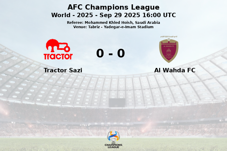Por su parte, el Al Wahda FC, con un 33% de posesión, apostó por un juego más directo y vertical. Lograron generar 10 disparos, de los cuales 4 exigieron al guardameta local. El equipo visitante también se mostró más efectivo en las jugadas a balón parado, obteniendo 8 saques de esquina frente a los 5 del Tractor Sazi. El encuentro se caracterizó por la intensidad, con un total de 18 faltas cometidas entre ambos equipos. El partido terminó con una tarjeta amarilla para el equipo local. A pesar de la alta posesión del Tractor Sazi, el Al Wahda FC demostró ser peligroso al contragolpe, dejando un partido táctico y disputado.