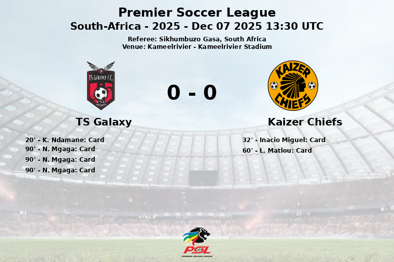 Kameelrivier, Sudáfrica – En un encuentro disputado en el Kameelrivier Stadium, el Kaizer Chiefs y el TS Galaxy empataron en un partido marcado por la intensidad y la disciplina defensiva del equipo local. El partido, válido por la jornada 7 de la Premier Soccer League, se jugó bajo el arbitraje de Sikhumbuzo Gasa.