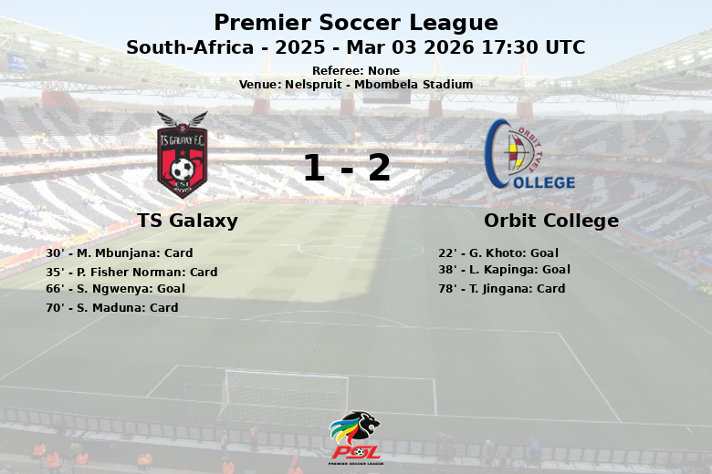 El TS Galaxy dominó el juego con 17 tiros totales, de los cuales 8 fueron a puerta, pero la defensa del Orbit College y su portero se mostraron sólidos. El equipo local también incurrió en un mayor número de faltas (17 contra 11) y recibió más tarjetas amarillas (3 contra 1). El partido fue intenso y disputado, con ambos equipos luchando por cada balón. Al final, la efectividad del Orbit College fue la clave para asegurar los tres puntos.