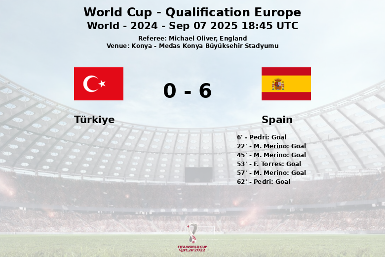 Si bien Turquía mantuvo un 50% de posesión, no logró transformar esto en oportunidades claras de gol, concretando solo dos tiros a puerta. España, por otro lado, fue implacable, convirtiendo seis de sus doce tiros a puerta en gol. El partido concluyó con una clara victoria para España, que suma tres puntos cruciales en su camino hacia el Mundial.