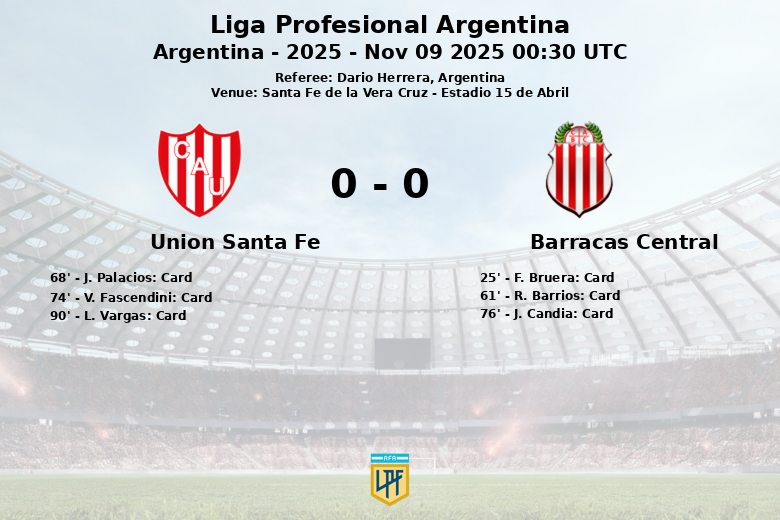 Santa Fe de la Vera Cruz, Argentina – En un partido disputado en el Estadio 15 de Abril, Unión de Santa Fe y Barracas Central igualaron 0 a 0 en un encuentro válido por la fecha 15 de la Liga Profesional Argentina. El partido, arbitrado por Dario Herrera, se caracterizó por un juego trabado en el mediocampo y pocas ocasiones claras de gol.