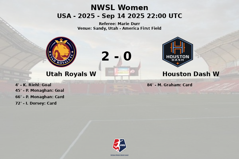 Antes del descanso, P. Monaghan amplió la ventaja para Utah en el minuto 45, gracias a una asistencia de N. Rabano, consolidando el dominio del equipo. Aunque Houston intentó reaccionar en la segunda mitad, la defensa de Utah se mantuvo sólida, impidiendo que el Dash registrara un solo tiro a puerta.
