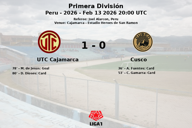 Cajamarca, Perú – En un encuentro correspondiente a la tercera fecha de la Primera División peruana, UTC Cajamarca logró imponerse a Cusco con un marcador ajustado. El partido, disputado en el Estadio Heroes de San Ramón de Cajamarca, se caracterizó por la alta posesión del balón por parte de Cusco (63%), aunque sin poder traducirlo en una mayor efectividad frente al arco rival.