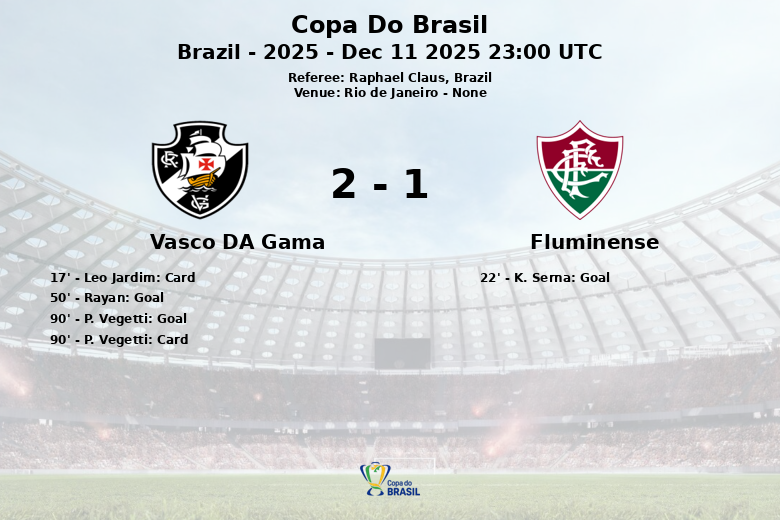 Rio de Janeiro – En un vibrante encuentro correspondiente a las semifinales de la Copa Do Brasil 2025, Vasco da Gama logró una importante victoria sobre Fluminense en un partido disputado en la ciudad carioca. Bajo la atenta mirada del árbitro Raphael Claus, el equipo de Vasco da Gama se impuso con un resultado de dos a uno.