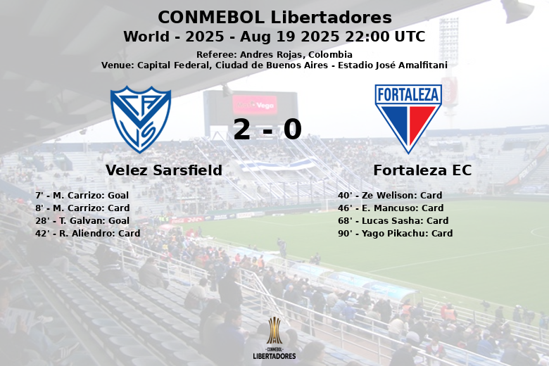 En un encuentro vibrante disputado en el Estadio José Amalfitani de Capital Federal, Vélez Sarsfield se impuso con autoridad a Fortaleza EC en el partido de ida de los octavos de final de la CONMEBOL Libertadores 2025. Bajo el arbitraje del colombiano Andrés Rojas, el equipo argentino demostró superioridad tanto en el juego como en el marcador.