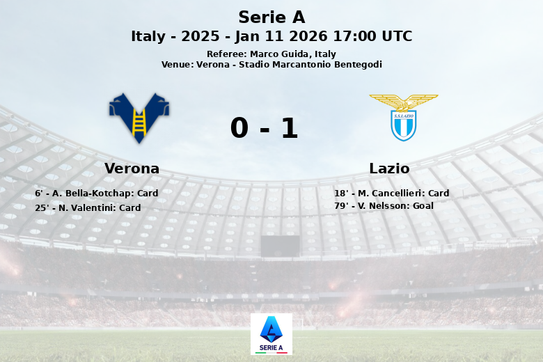 El único gol del partido llegó en el minuto 79, gracias a un autogol de Nelsson, dándole la victoria a la Lazio. A pesar del esfuerzo, el Verona no pudo revertir el marcador y terminó cediendo los tres puntos en casa. El partido se jugó bajo un ambiente tenso, reflejado en las tarjetas mostradas a lo largo del encuentro.