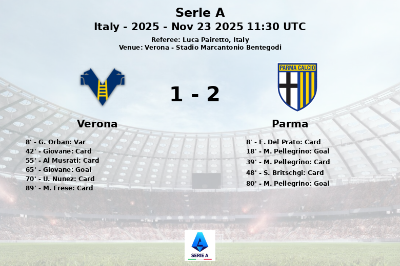 Home Matches Verona vs Parma Nov 23 2025 11:30 UTC