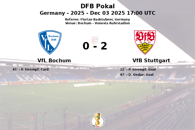 El Stuttgart abrió el marcador temprano gracias a un autogol de P. Strompf en el minuto 12. La situación se complicó aún más para el Bochum justo antes del descanso, cuando Strompf recibió una tarjeta roja en el minuto 45, dejando a su equipo con diez jugadores.
